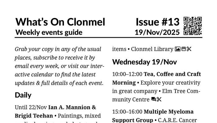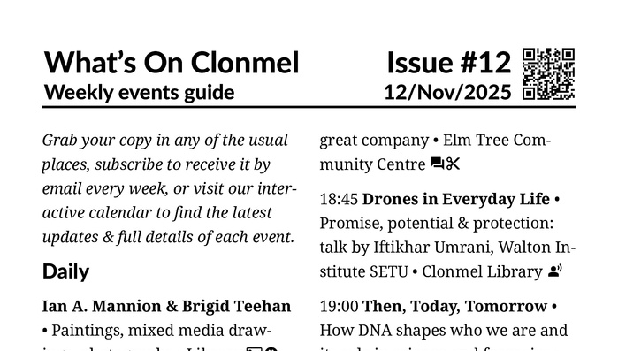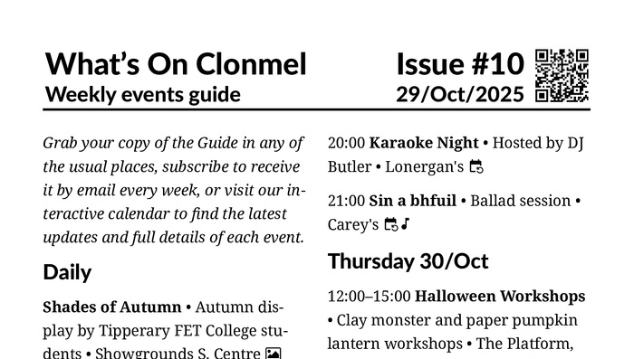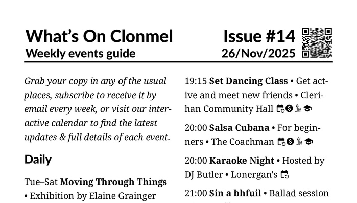 What's On Clonmel, your antidote to the seasonal blues.